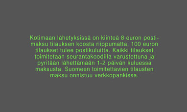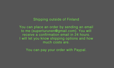 Foreign customers, foreign retailers and foreign libraries! You can place an order by sending an email to me ( s u p e r t u r u n e n @ g m a i l . c o m ). You can pay your order with PayPal, if it is the best option for you.